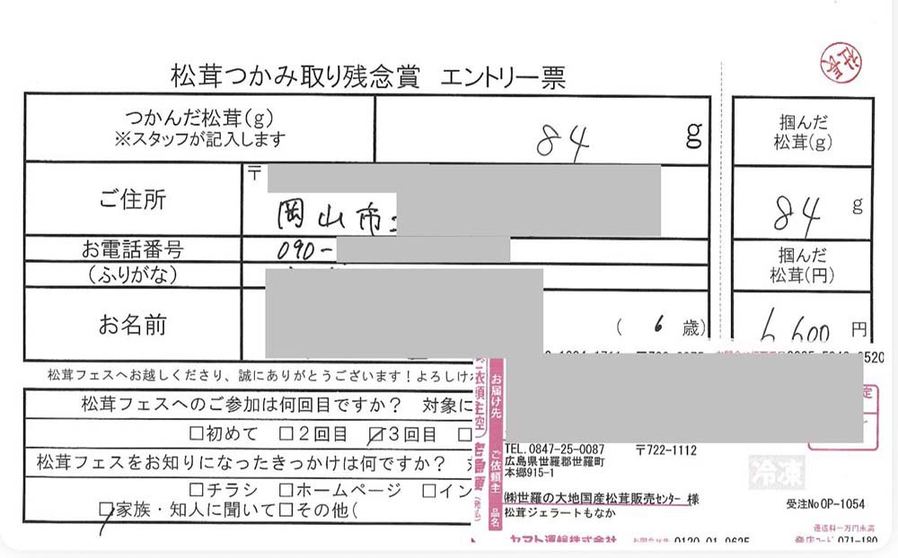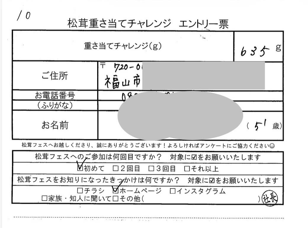 ニアピン賞の方に松茸を送りました。当選おめでとうございます。